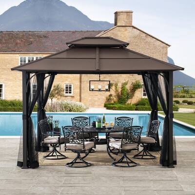 Buy products such as outsunny 10 x 12 steel hardtop gazebo with netting curtains and sidewalls, brown and black at walmart and save.